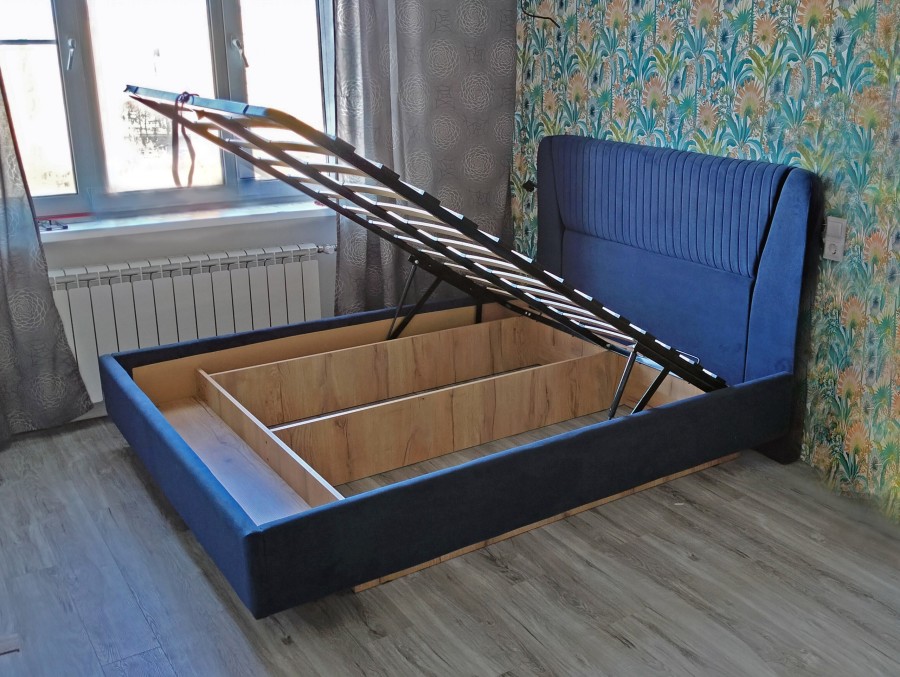 - Кровать с подъемным механизмом. Полезная высота короба: 26.6 см. Бельевой ящик.