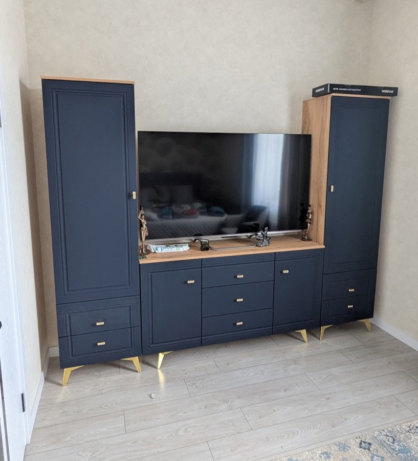 - Материал фасадов: МДФ Темно-синий софт, зеркало.