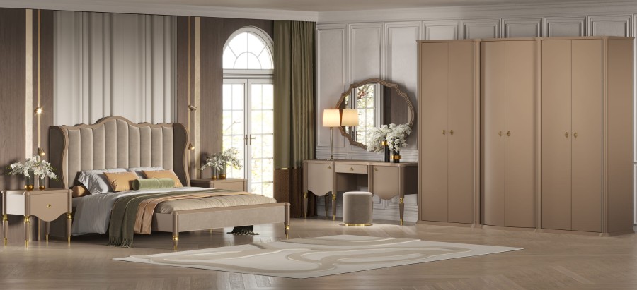 Туалетный стол "София" с выдвижными ящиками и местом для хранения косметики. Дополнительное удобство обеспечивает зеркало. Используемый в качестве стула пуф можно задвигать под стол с целью высвобождения пространства.