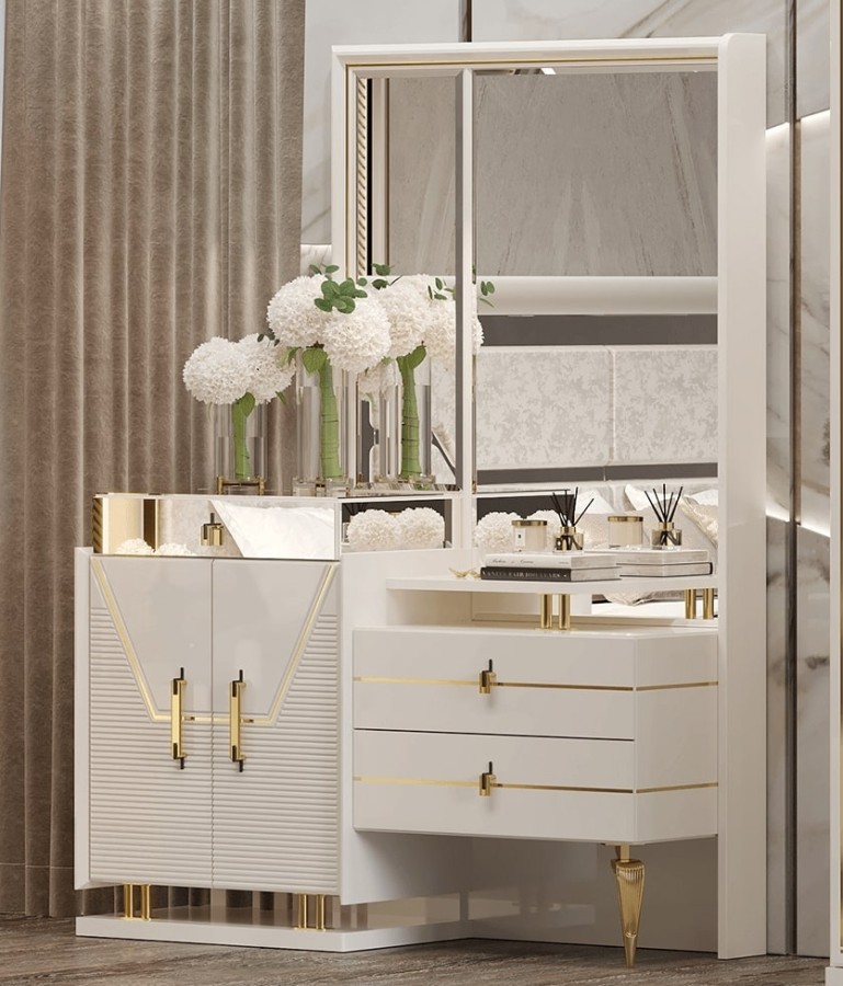 Туалетный стол "Стефани" с выдвижными ящиками и изящной колечницой. Дополнительное удобство обеспечивает зеркало.