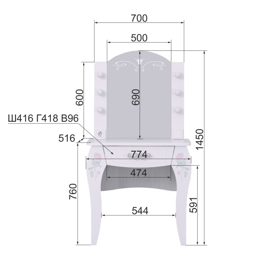 «Розалия» из зала Туалетный столик для девочки с подсветкой №12