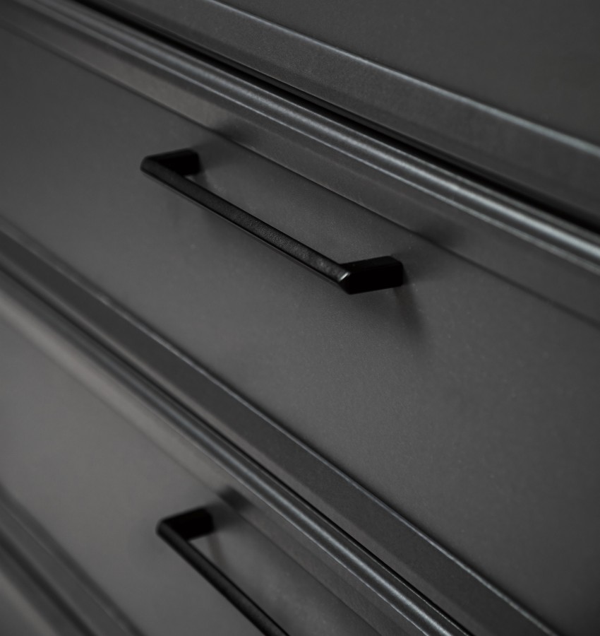 Прикроватная тумба AURELIO 41 с двумя выдвижными ящиками, обрамлёнными тонким фигурным профилем – красивый и функциональный модуль. Ящики тумбы на шариковых направляющих. Основательные опоры из МДФ не деформимуются со временем. Дополняют тумбу чёрные металлические ручки на ящиках. Донья ящиков в древесном декоре придают мебели коллекции Aurelio дополнительную эстетику.