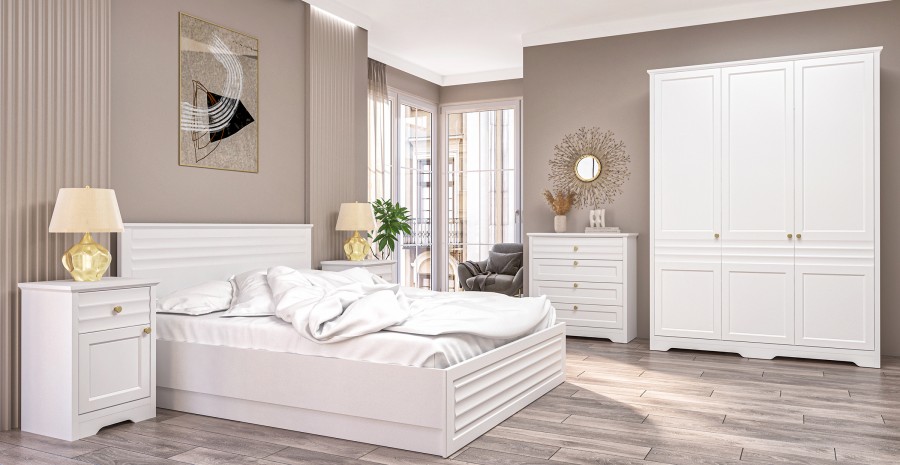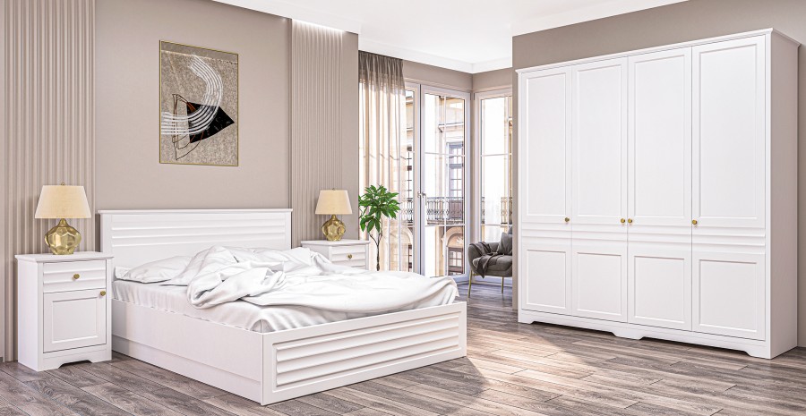 Денвер – это коллекция корпусной мебели для спальни, гостиной и столовой. Прямые строгие линии в сочетании с легкой горизонтальной волной на фасадах придают мебели элегантный и уверенный вид.