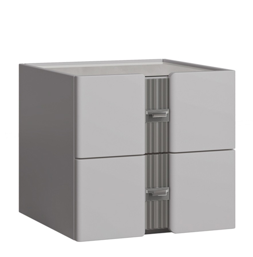 - Фасад МДФ толщиной 25 мм (МДФ - древесноволокнистая плита среднего уровня плотности, класс E1 - безопасен для здоровья). Покрыта эмалью в 4 слоя. Цвет фасадов: крем или серый кашемир, серебро.
