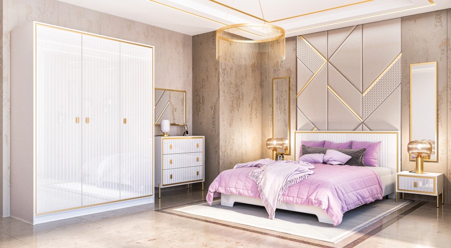 Серия ЛЮКСОР – мебель для спальни и гостиной в классическом стиле фабрики Неман. Люксор – это игра света и тени в гранях фасада; безупречное сочетание глянца, зеркальных отражений и приглушённого чарующего сияния металла.