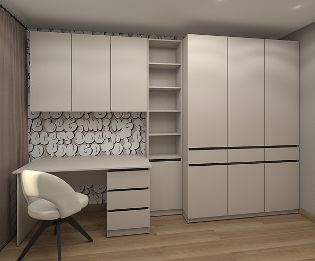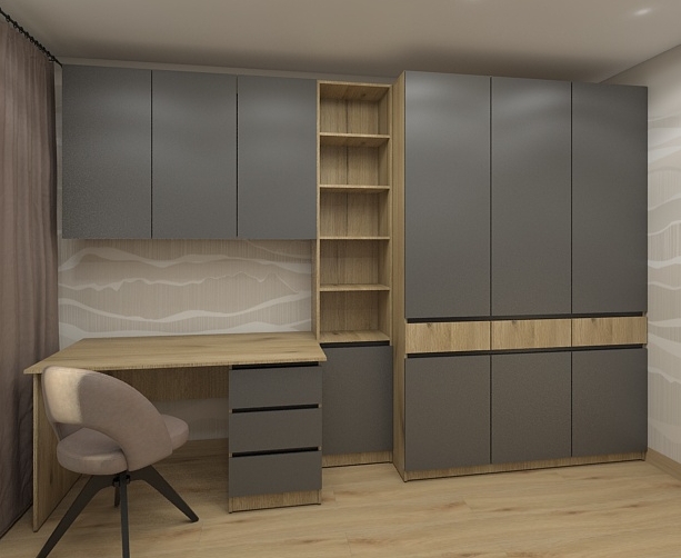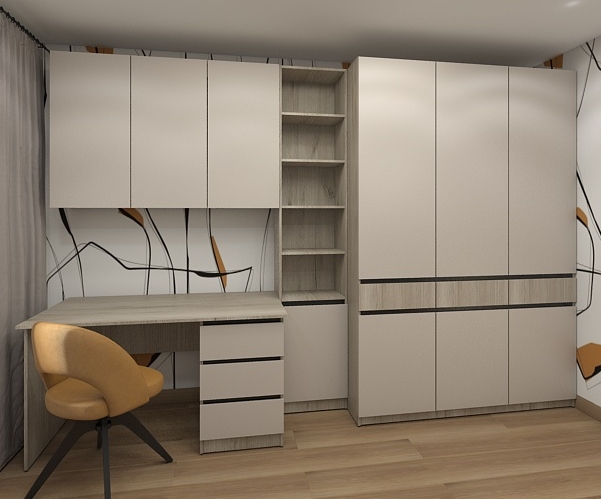 Стол компьютерный можно дополнить стеллажом, шкафом навесным, собрав универсальное и функциональное пространство для учебы, работы.