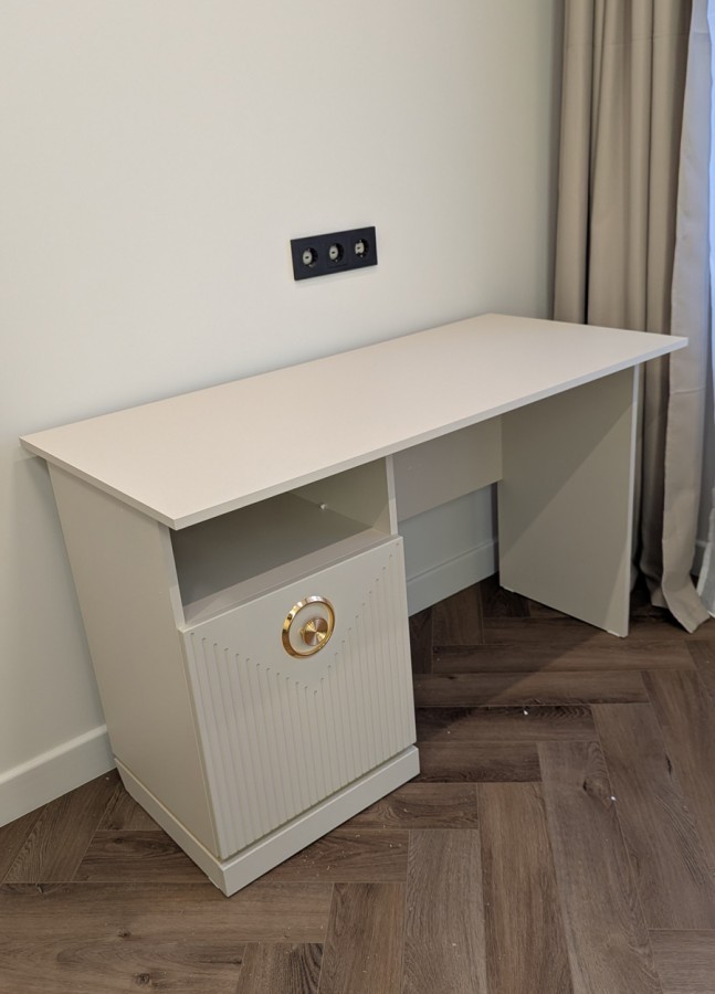 Письменный стол «Капри» - это необходимый предмет мебели при меблировке гостиной или спальни. Он будет особенно актуален, если вам необходимо оборудовать рабочее место или зону для учебы. Стол имеет оптимальные габариты, которые позволят разместить компьютер и всю необходимую документацию. Модуль очень функционален благодаря своей продуманной конструкции. Здесь вам доступны тумба с дверкой и ниша для открытого хранения всевозможных письменных принадлежностей, книг и журналов. Дизайн и наполнение стола позволят использовать его и как туалетный столик в спальне , в таком случае к нему прекрасной подойдёт зеркало Капри.