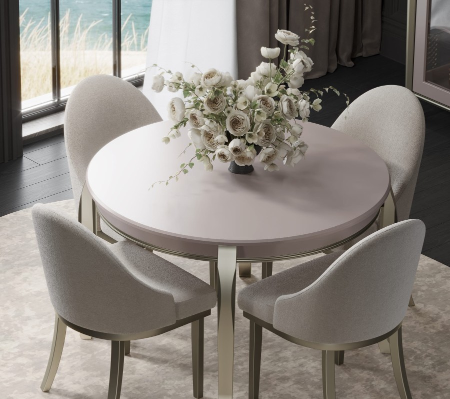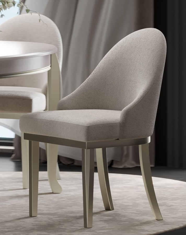 Стул Верона является частью обеденной группы из этой коллекции. Стулья с обивкой из бежевого велюра обеспечивают максимальный комфорт и добавляют нотку роскоши. Ножки стульев из бука не только прочные и надежные, но и прекрасно дополняют общий дизайн, создавая гармоничный ансамбль.